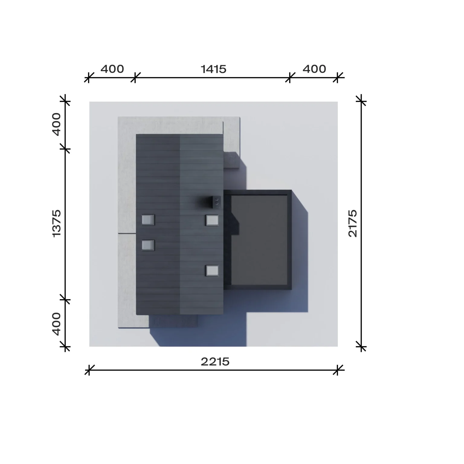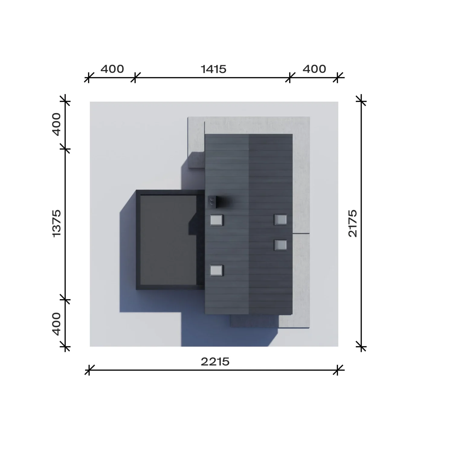 To parametr określający najmniejszą szerokość i długość działki budowlanej, który pozwoli wybudować dany budynek na działce przy zachowaniu minimalnych odległości ścian budynku od granicy działki określonych przez Warunki techniczne.