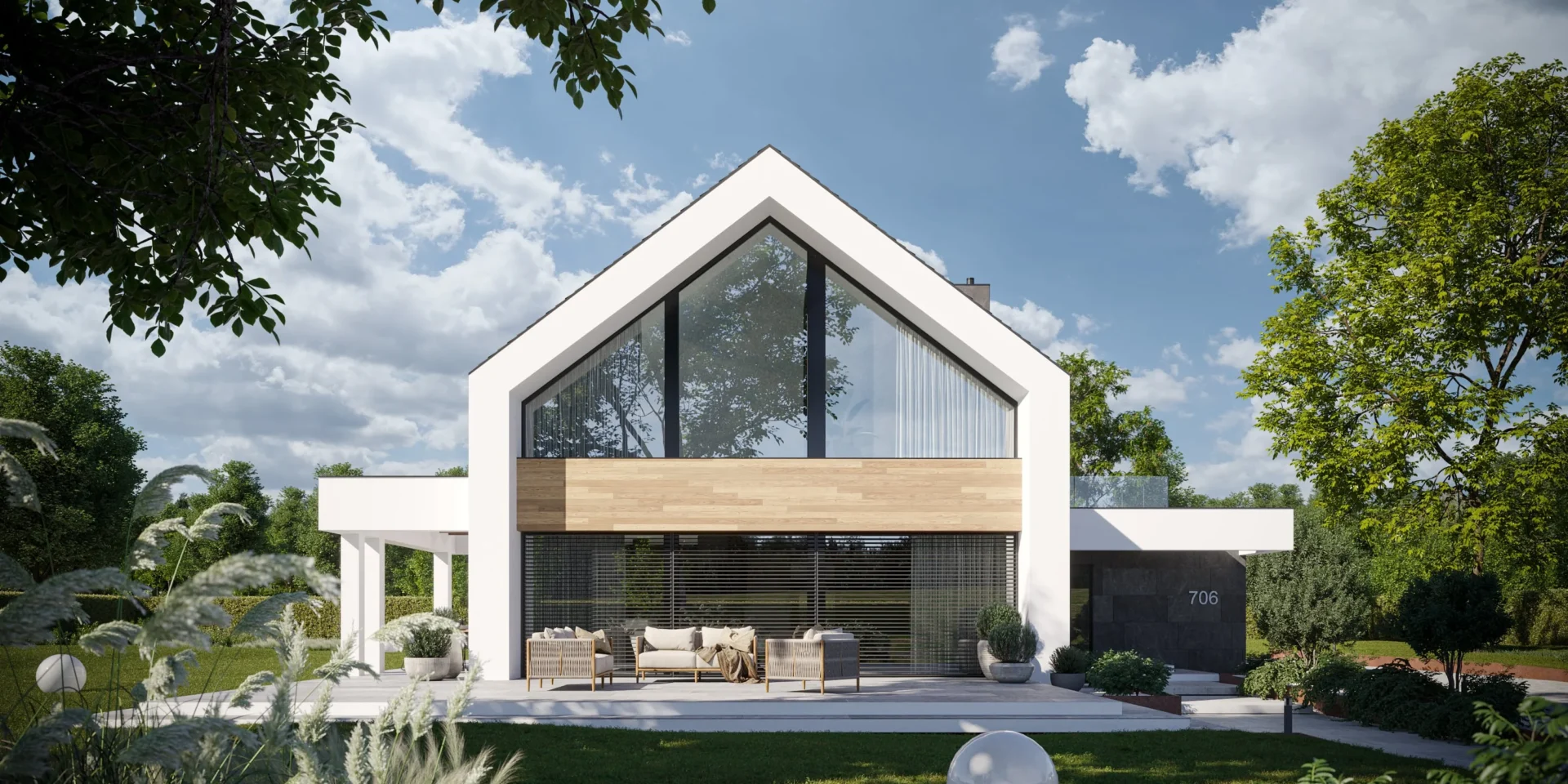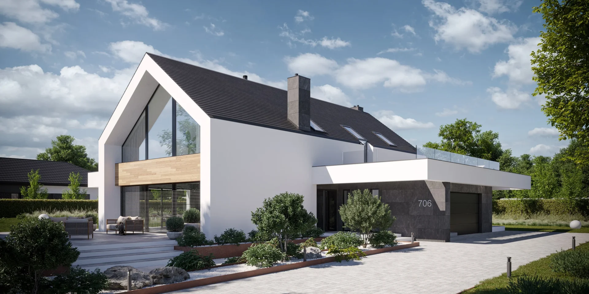 Nowoczesność oznacza nie tylko podążanie za trendami, ale ich pełne urzeczywistnianie – dlatego więc projekt jednorodzinnego domu New House 706 to idealne odwzorowanie tego, co w nowoczesnej architekturze najmodniejsze. New House to projekt willi z poddaszem użytkowym, utrzymanej w stylu nowoczesnej stodoły. Jeśli więc Twoje plany dotyczą zamieszkania w przestronnej willi, to nasza propozycja trafi w Twoje gusta.