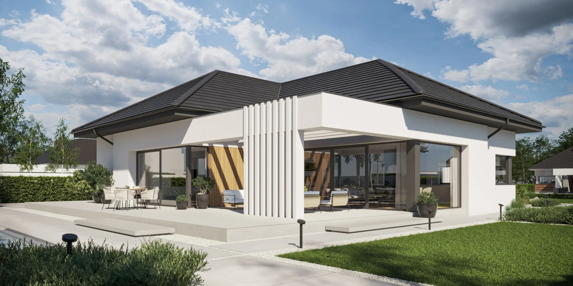 Parterowy projekt domu z 3 sypialniami z elegancką elewacją