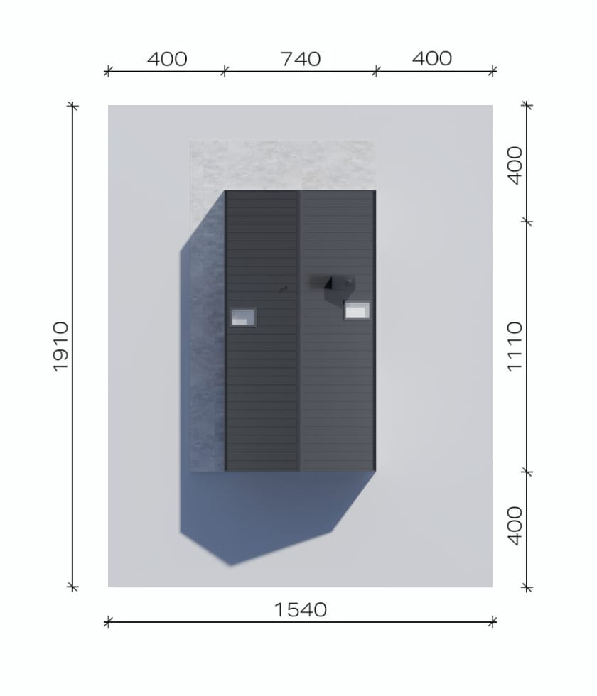 To parametr określający najmniejszą szerokość i długość działki budowlanej, który pozwoli wybudować dany budynek na działce przy zachowaniu minimalnych odległości ścian budynku od granicy działki określonych przez Warunki techniczne.