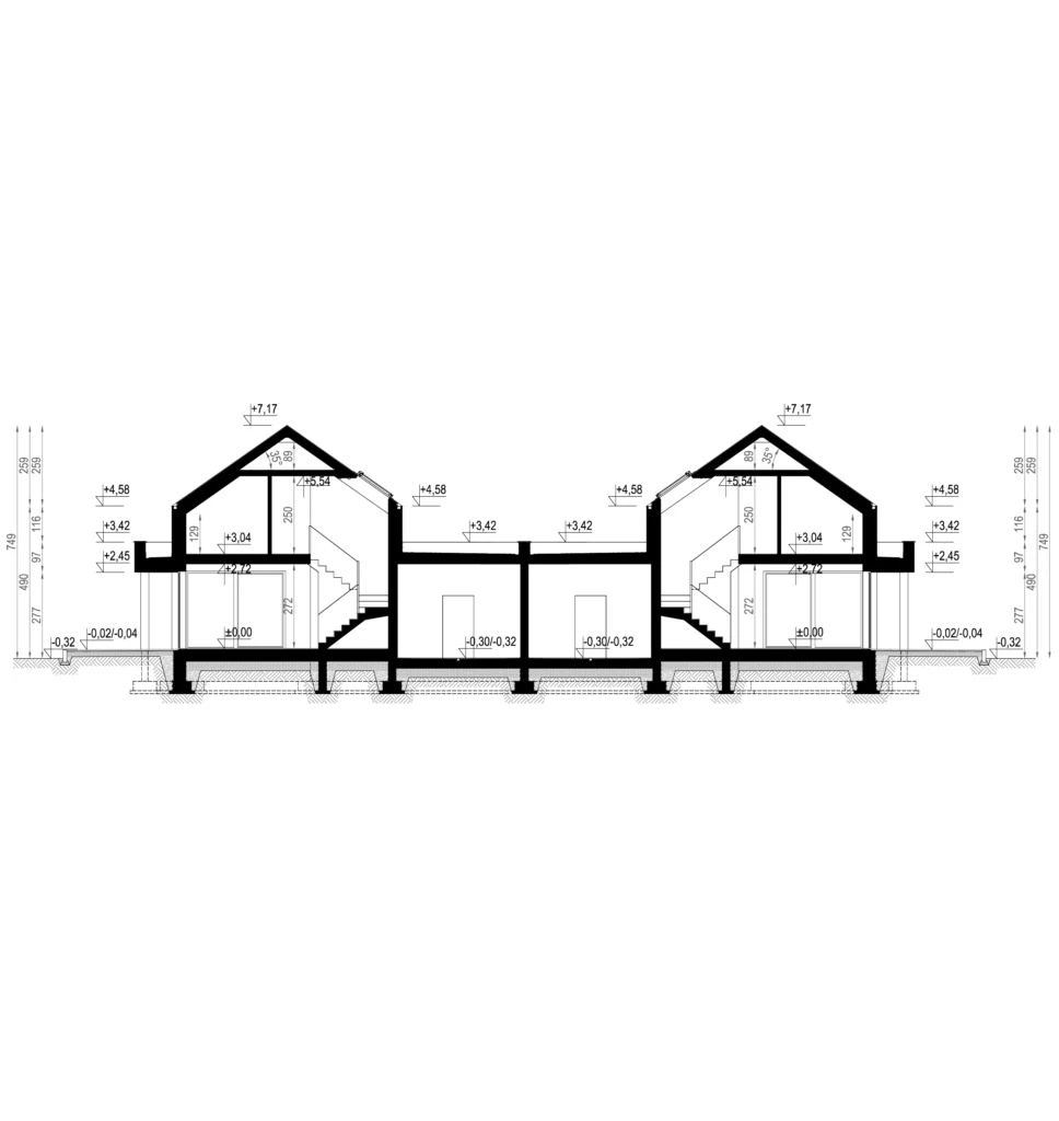 Każdy lokal oferuje 102 m² powierzchni użytkowej, co stanowi idealny balans pomiędzy kompaktową bryłą a funkcjonalnością wnętrz. W projekcie przewidziano poddasze użytkowe, które tworzy wygodną, prywatną strefę nocną dla domowników.