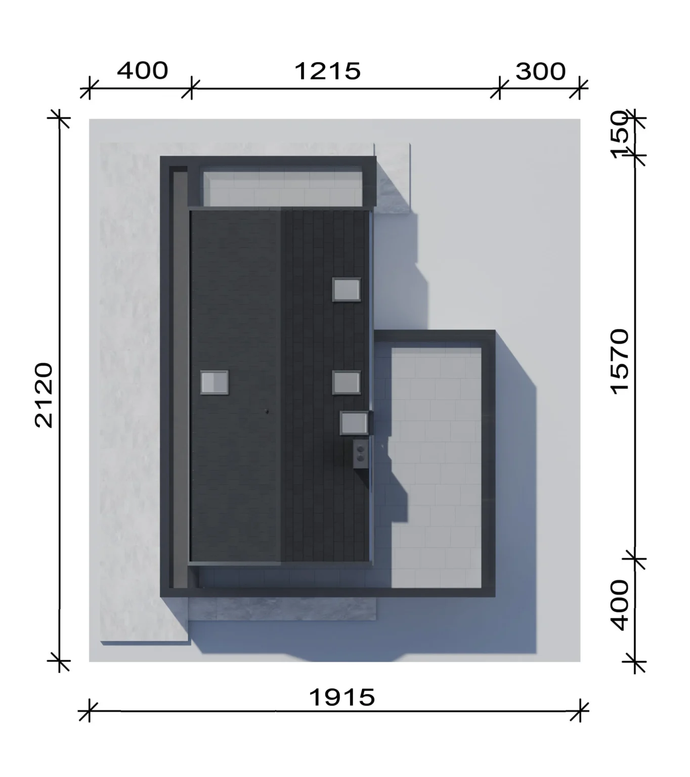 To parametr określający najmniejszą szerokość i długość działki budowlanej, który pozwoli wybudować dany budynek na działce przy zachowaniu minimalnych odległości ścian budynku od granicy działki określonych przez Warunki techniczne.