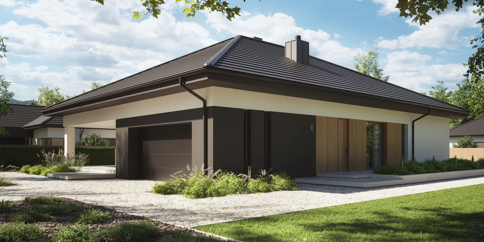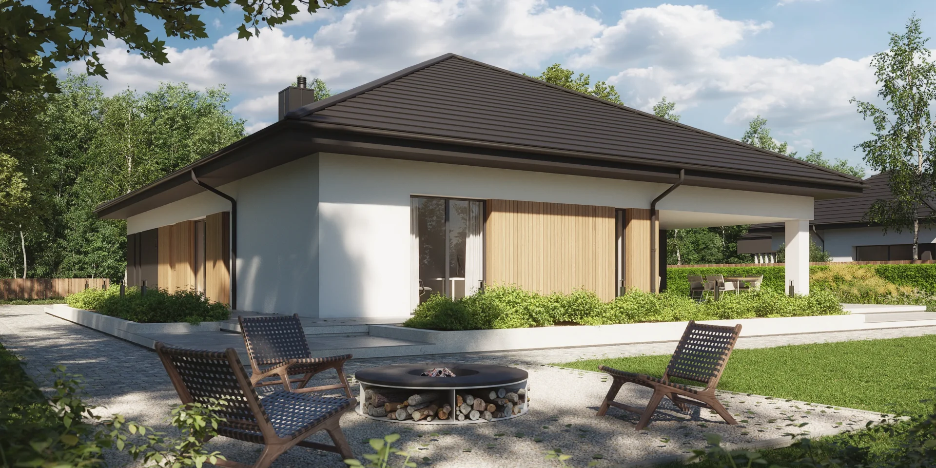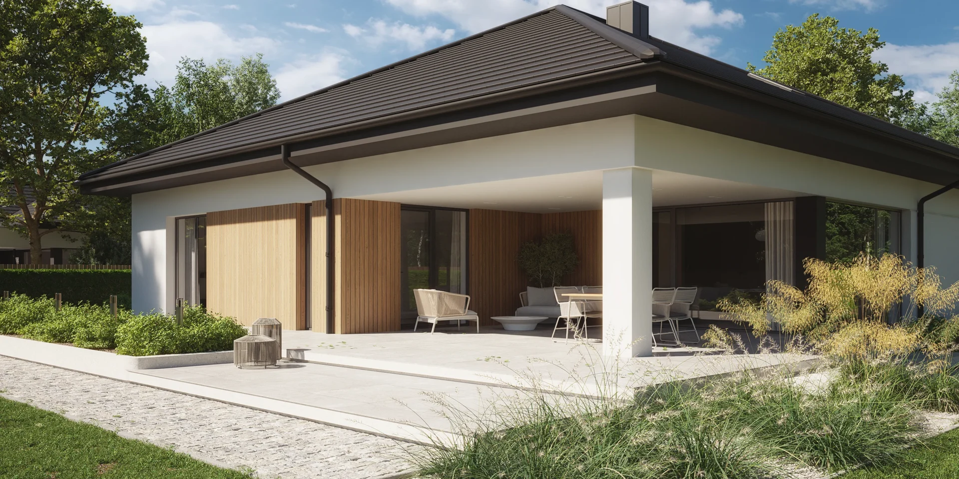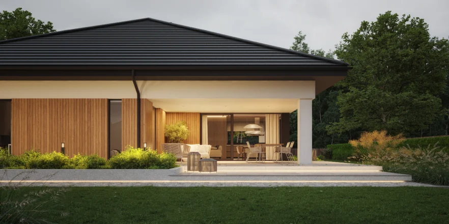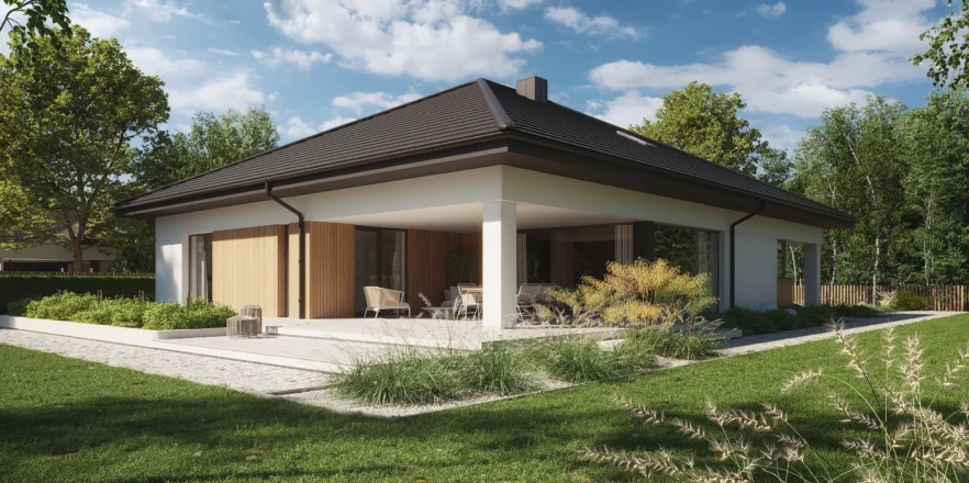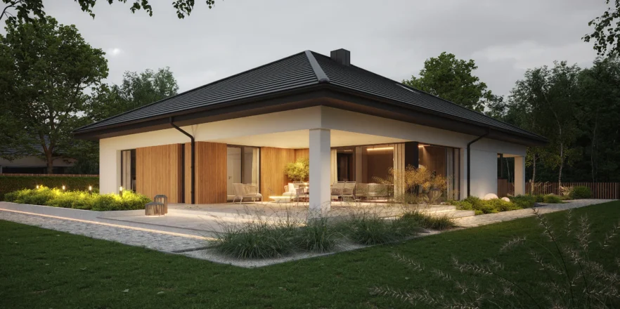 Styl: nowoczesna parterówka z dachem czterospadowym