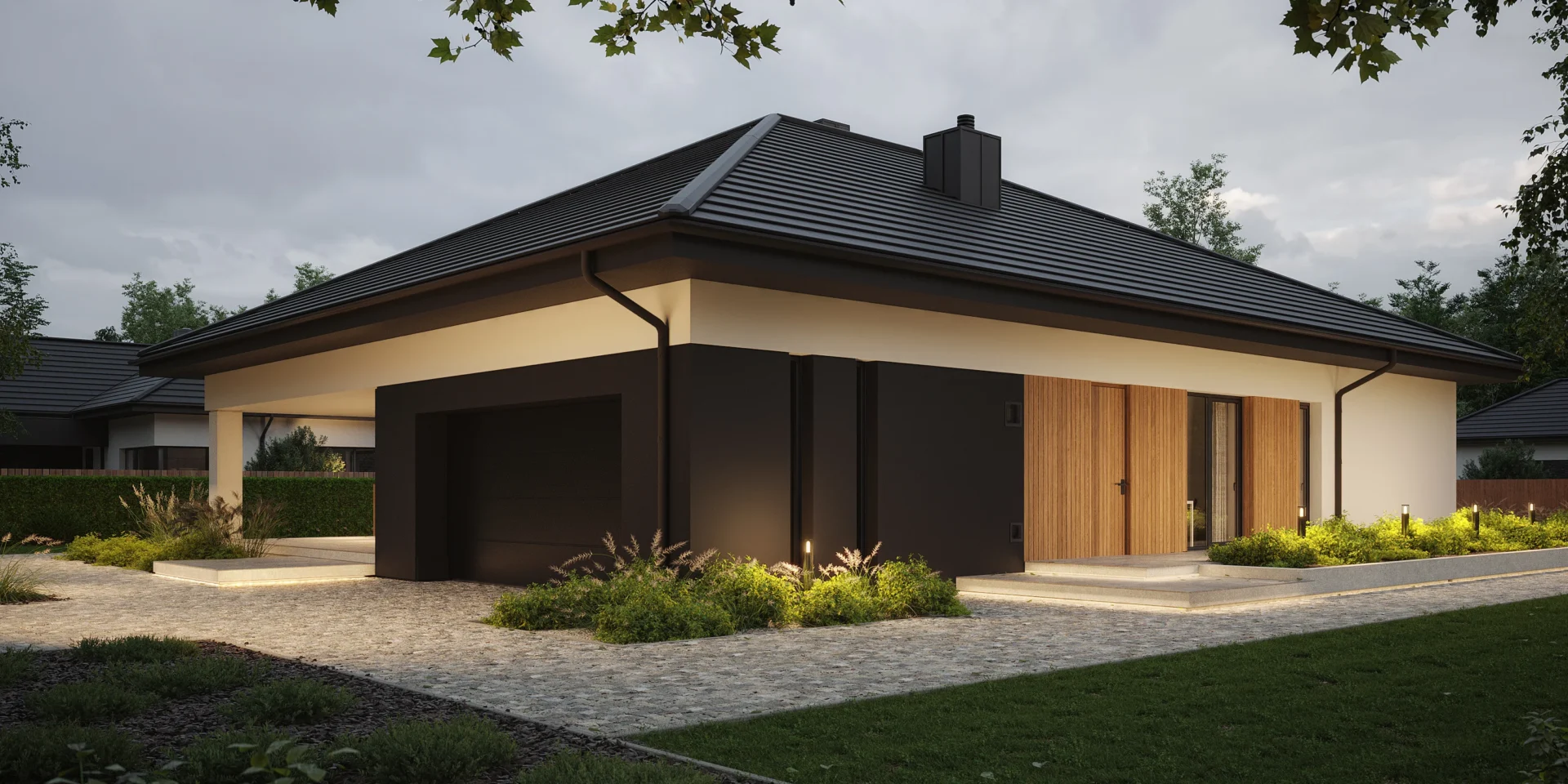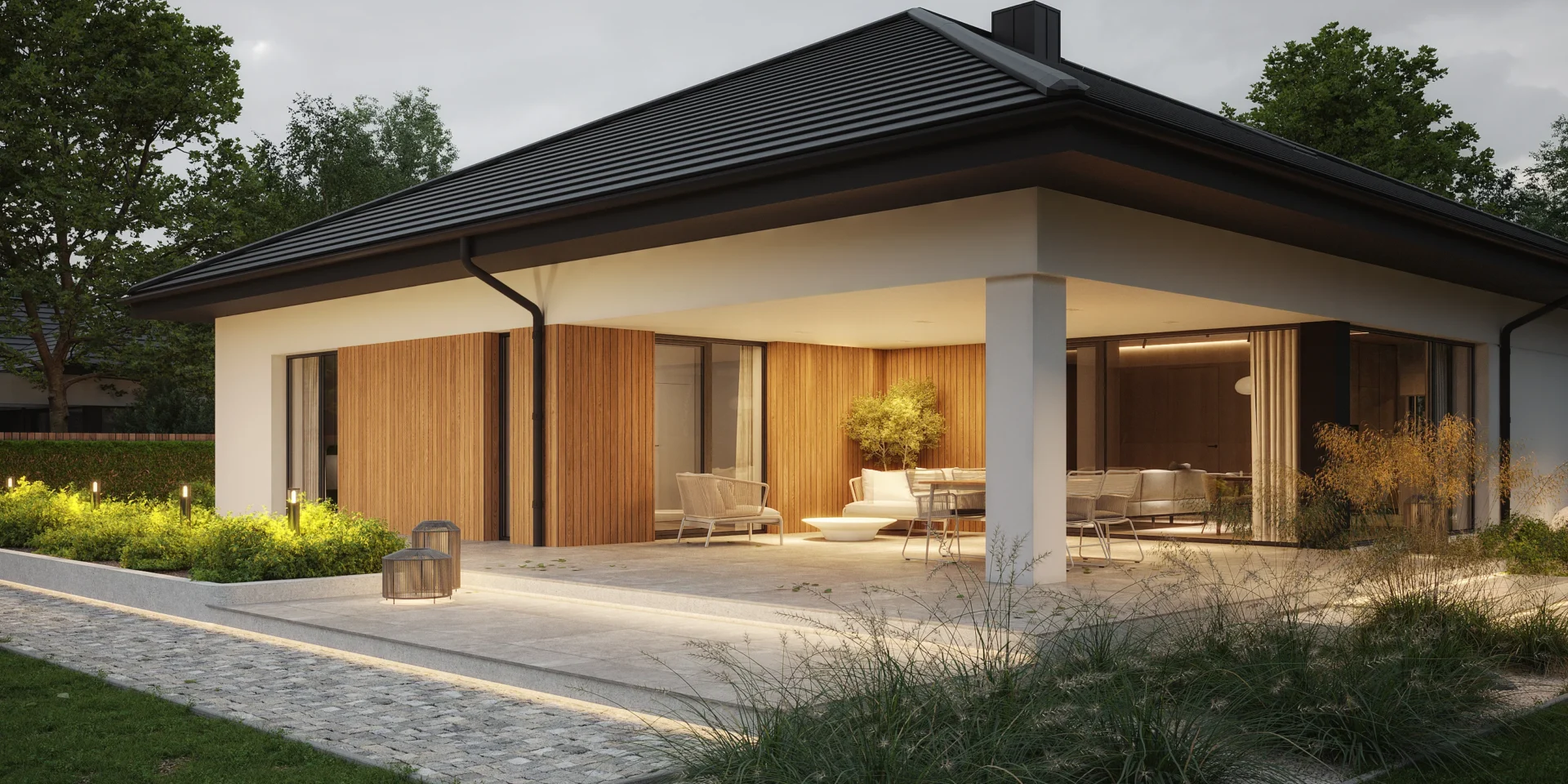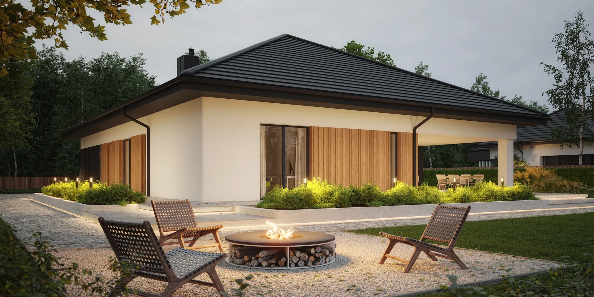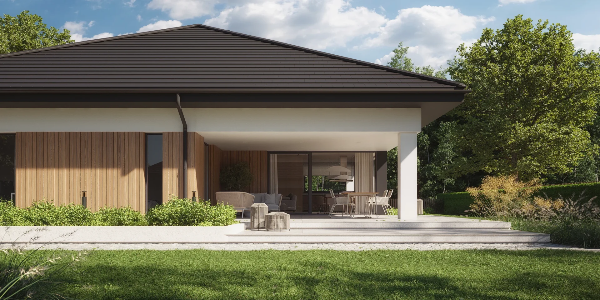 Styl: nowoczesna parterówka z dachem czterospadowym