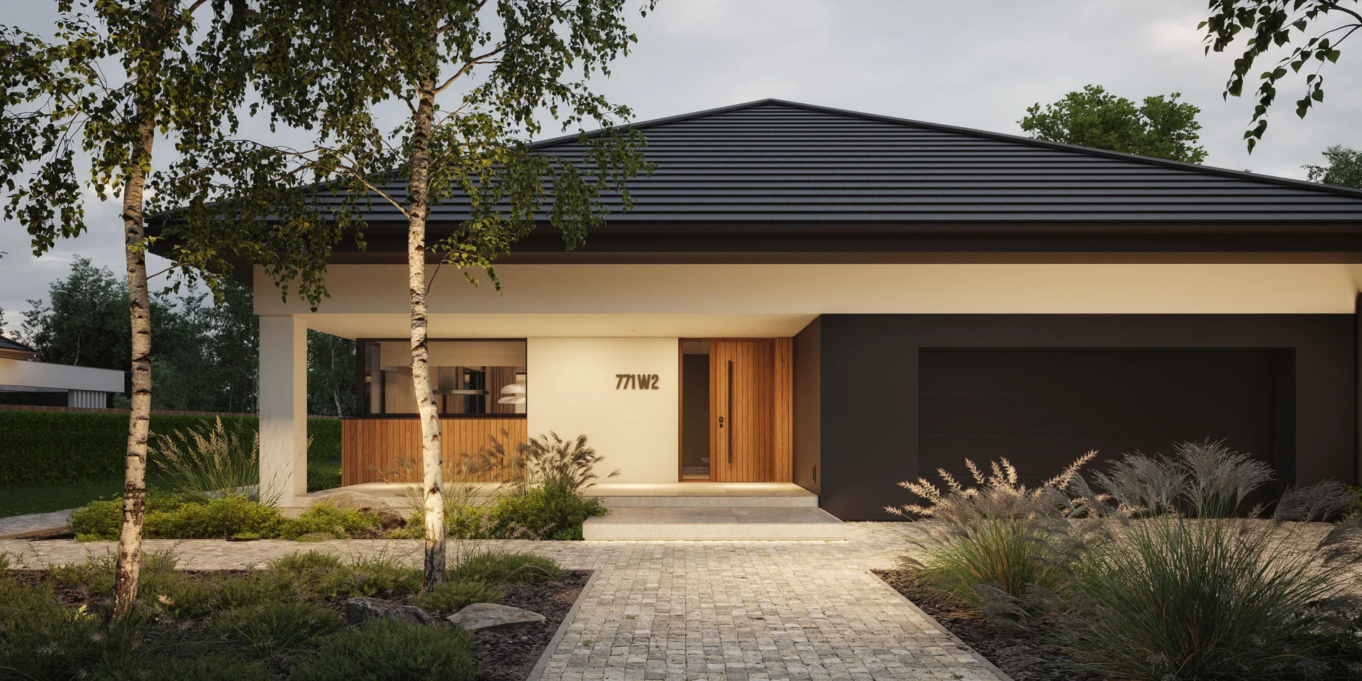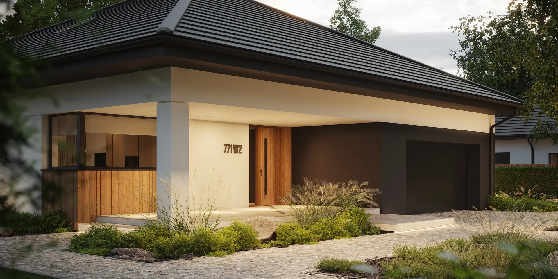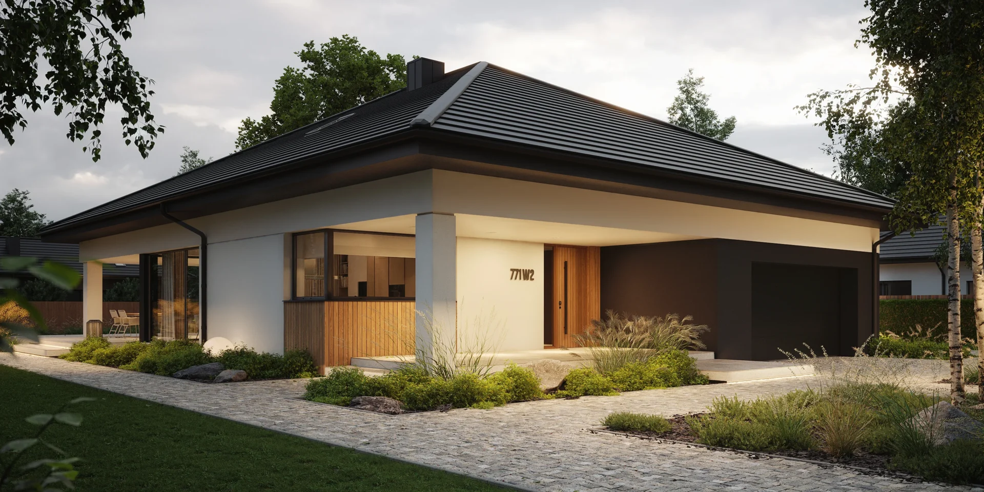 NewHouse 771 w2 to nowoczesna, komfortowa parterówka zaprojektowana dla rodzin, które szukają funkcjonalnej przestrzeni w rozsądnym metrażu. Ten projekt domu do 150 m² łączy przemyślany układ pomieszczeń, energooszczędne rozwiązania i ponadczasową estetykę.