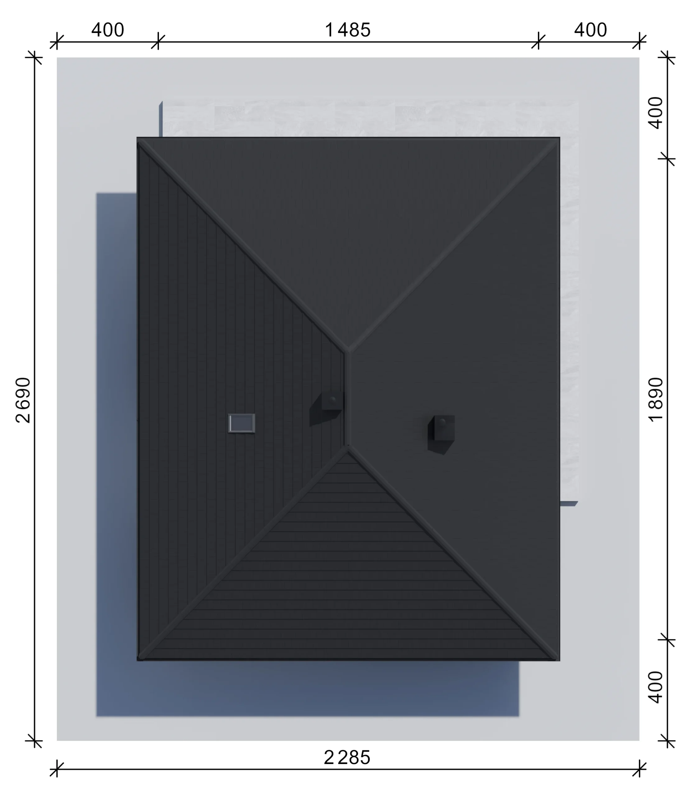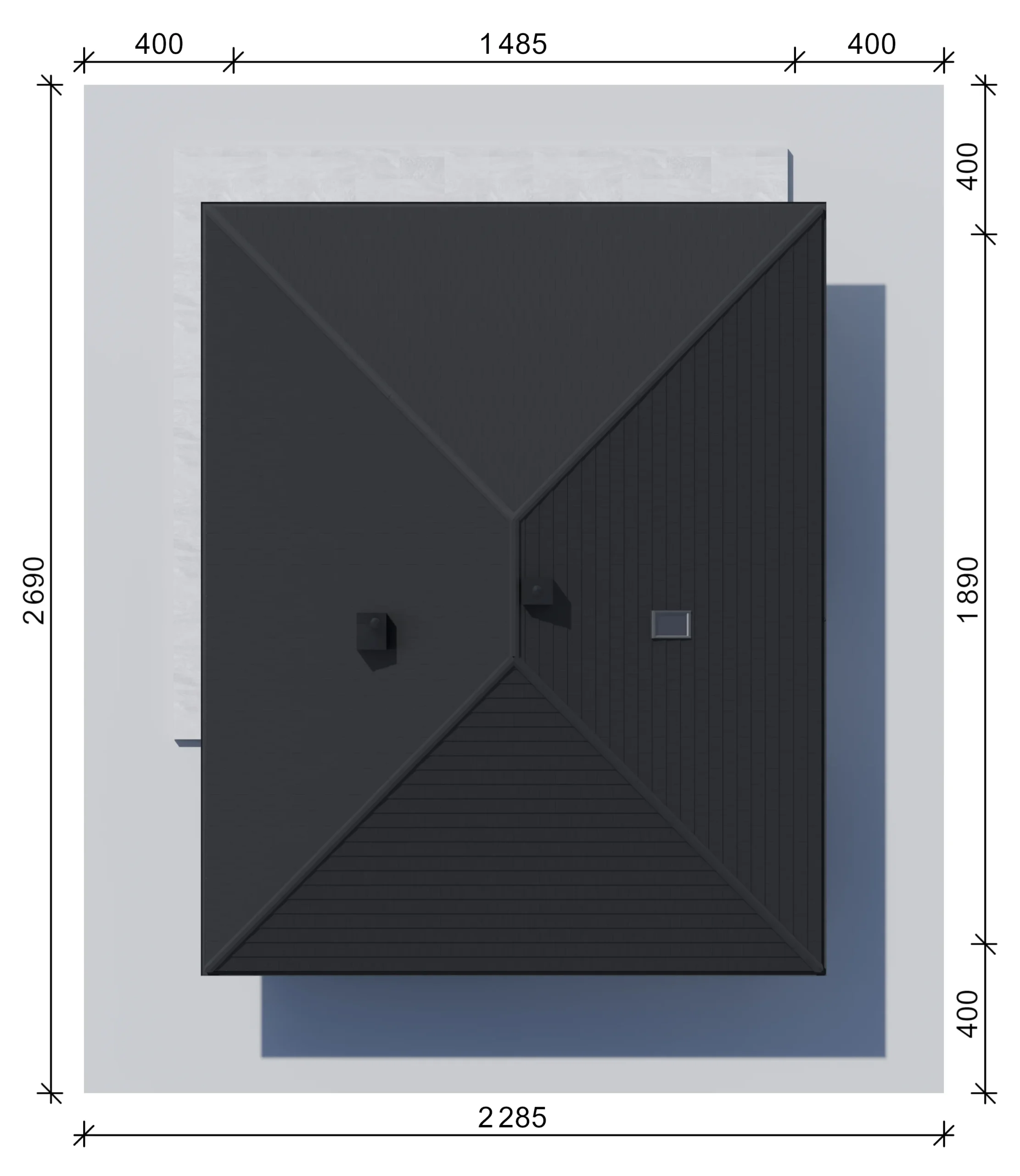 Dom przykryto dachem czterospadowym o kącie nachylenia 27°, z kalenicą prostopadłą do wjazdu. Pokrycie stanowi dachówka ceramiczna.